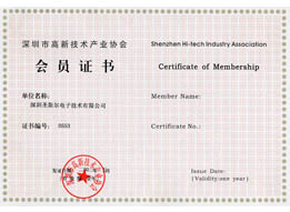 深圳市高新技術(shù)產(chǎn)業(yè)協(xié)會(huì)會(huì)員證書