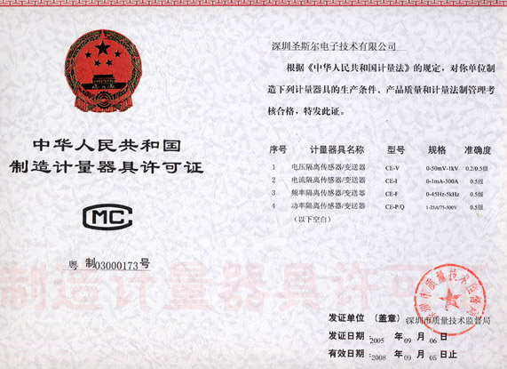 計(jì)量器具樣機(jī)實(shí)驗(yàn)合格證書